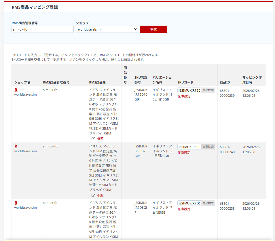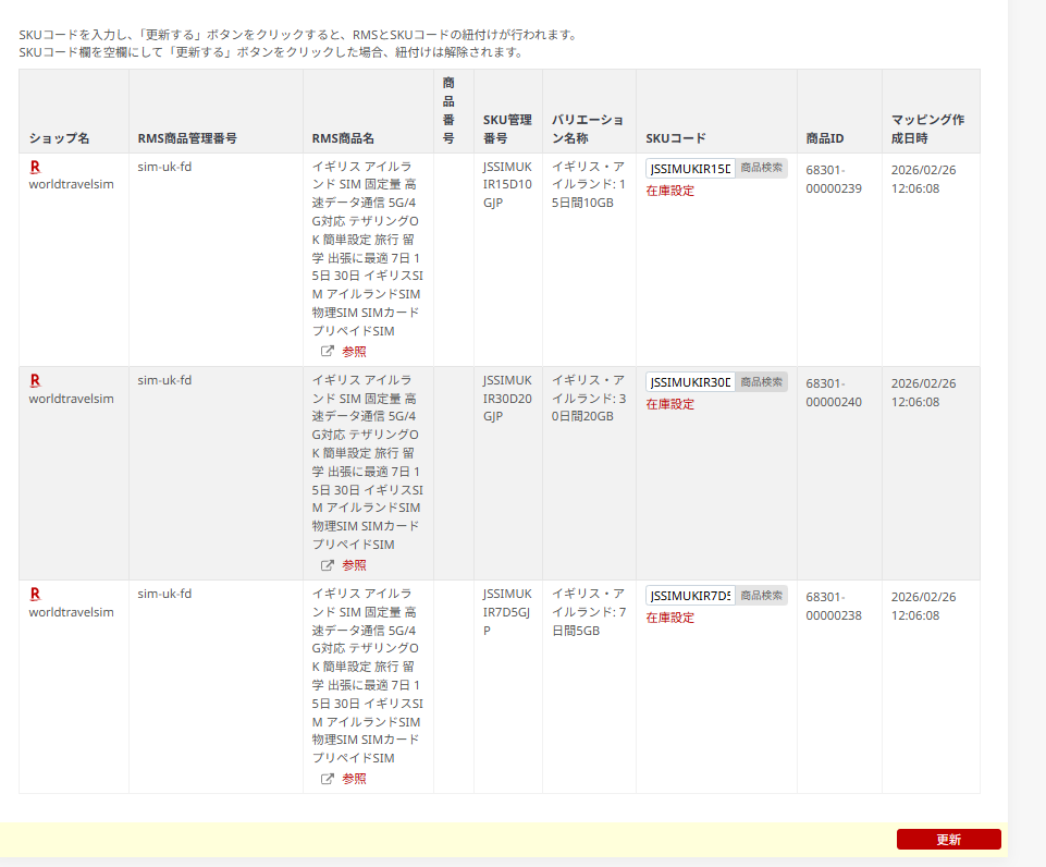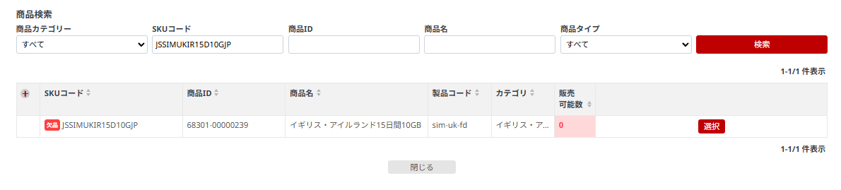 ⑥skuコードで検索して出てきた商品を選択